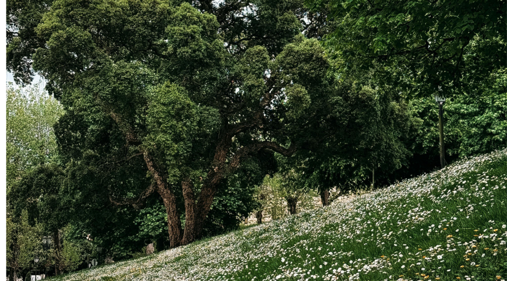 Oviedo sits in northern Spain, so the climate feels cooler than in the south. The region also looks greener. Rain falls during the year, but it helps shape the landscapes of Asturias.